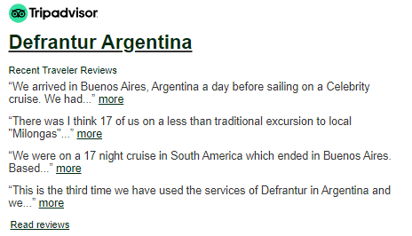 Defrantur DMC, since 1997, designs tailor-made programs for Tourism, Incentive, Special Interest, and Cruise travel. We have extensive and up-to-date knowledge and experience in Argentina to provide your group with unforgettable experiences. We create proposals in Buenos Aires to surprise you.